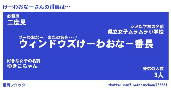 | 肩書あだ名 | 『けーわおなー社長』『けーわおなー班長』 |