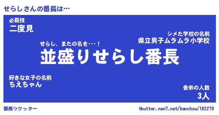 | 肩書あだ名 | 『せらしCEO』『せらし総理大臣』 |
