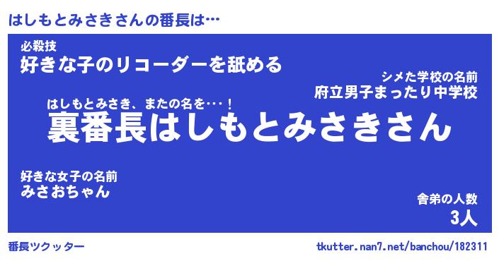 | ヘコむあだ名 | 『はしふぇ~』『つくし』『はしを』 |