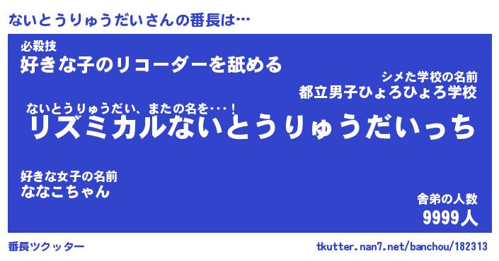 | 肩書あだ名 | 『ないとうりゅうだい店長』 |