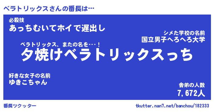| ポケモン風あだ名 | 『ベラチュウ』『ベラトダネ』 |