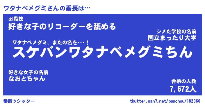 | ピコ太郎風あだ名 | 『ワコ史郎』『ピワ次郎』『ワタ八郎』 |