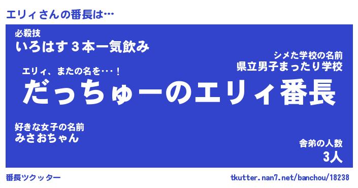 | ヒーロー風カッコイイあだ名 | 『スーパーエリィ』『ウルトラエリィマン』 |