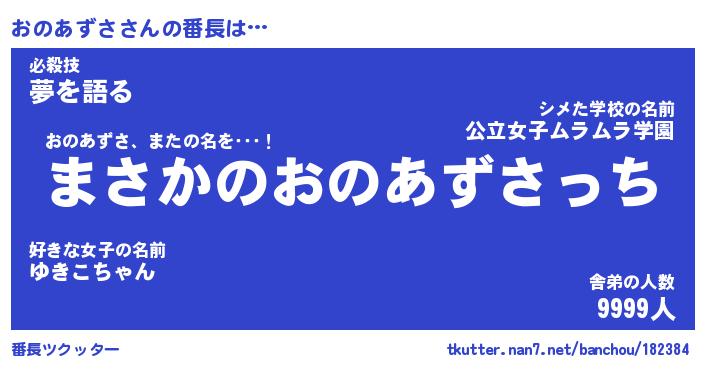 | 伝説のあだ名 | 『伝説のスナイパーおのあずさ』 |