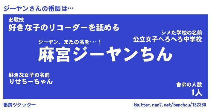 | 肩書あだ名 | 『ジーヤン店長』『ジーヤン国家主席』 |