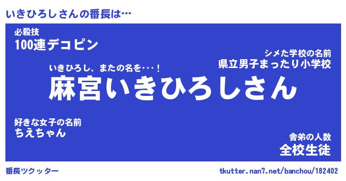 | ヒーロー風カッコイイあだ名 | 『スーパーイキヒロシ』『黄金騎士イキ』 |