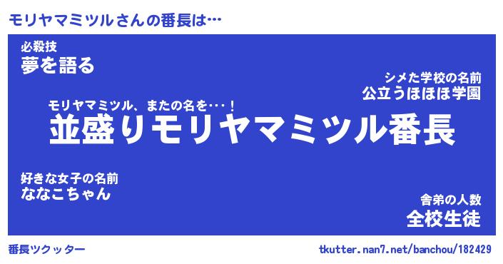 | 肩書あだ名 | 『モリヤマミツル店長』 |