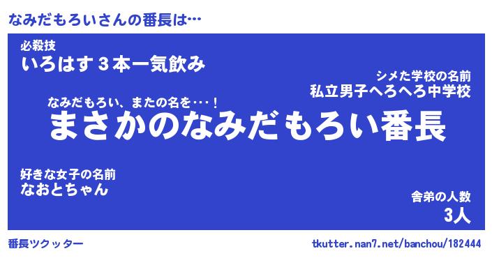 | ヒーロー風カッコイイあだ名 | 『スーパーナミダモロイ』『魔戒騎士ナミ』 |