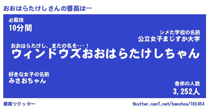 | 男性向けラノベタイトル風あだ名 | 『おおはらたけしの憂鬱』 |