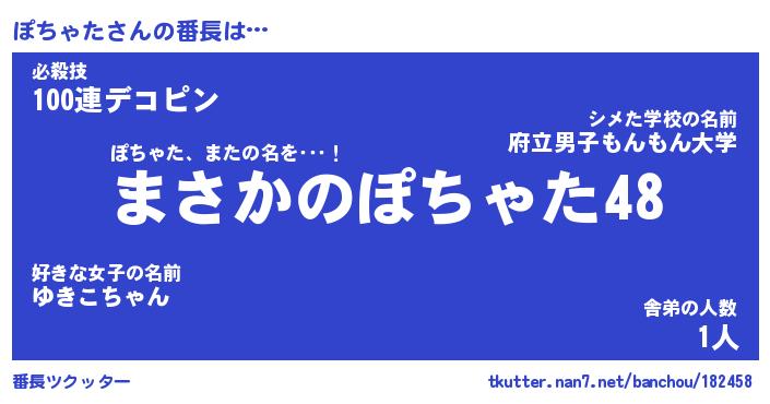 | 意味不明あだ名 | 『ペロリンぽちゃた』『永久保存ぽちゃた』 |