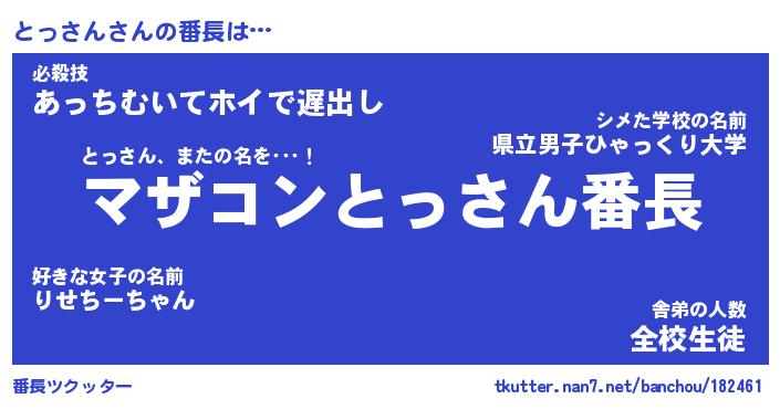 | 伝説のあだ名 | 『封印されしスナイパーとっさん』 |