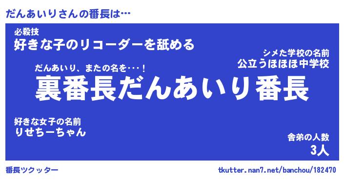 | 肩書あだ名 | 『だんあいり御曹司』『だんあいり塾長』 |