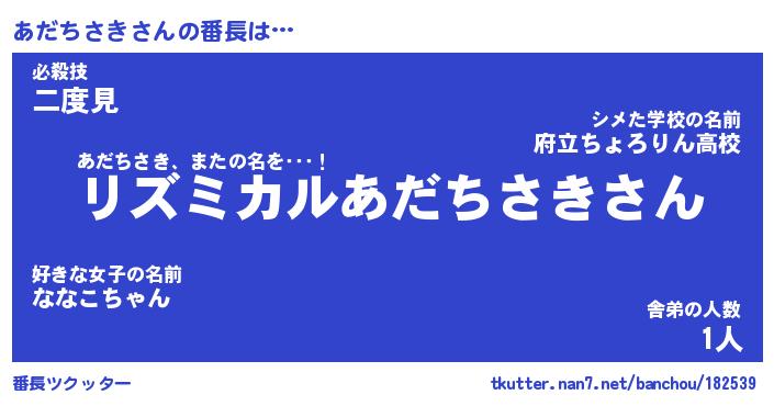 | ポケモン風あだ名 | 『アダチュウ』『アダチダネ』 |