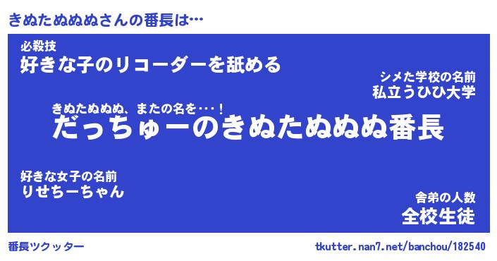 | 肩書あだ名 | 『きぬたぬぬぬ御曹司』 |