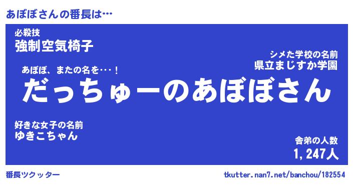 | ヒーロー風カッコイイあだ名 | 『スーパーアボボ』『ウルトラあぼぼマン』 |