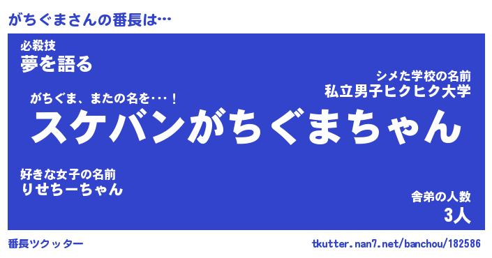 | 意味不明あだ名 | 『ペロリンがちぐま』『永久保存がちぐま』 |
