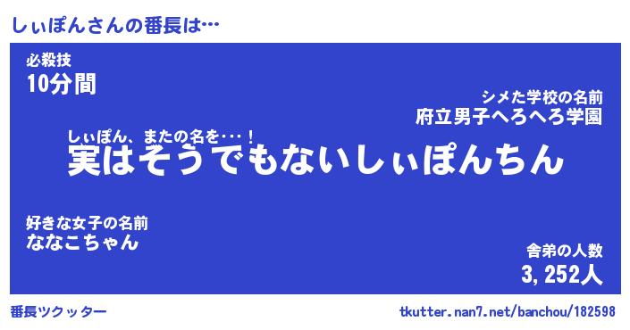 | 意味不明あだ名 | 『ペロリンしぃぽん』『永久保存しぃぽん』 |