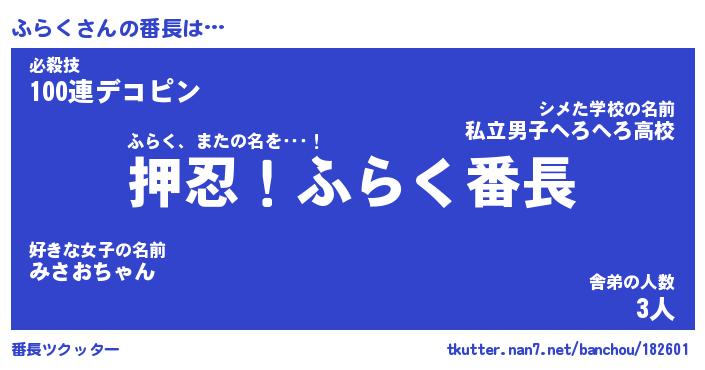 | ヒーロー風カッコイイあだ名 | 『スーパーフラク』『ウルトラふらくマン』 |