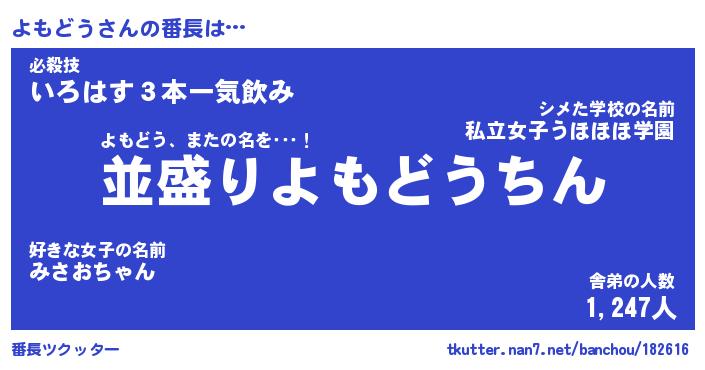 | 意味不明あだ名 | 『ペロリンよもどう』『永久保存よもどう』 |