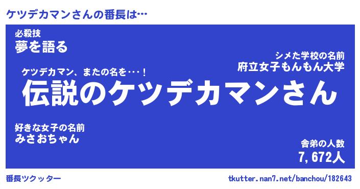 | ヒーロー風カッコイイあだ名 | 『スーパーケツデカマン』『炎刃騎士ケツ』 |