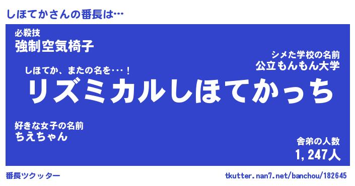 | 肩書あだ名 | 『しほてか社長』『しほてか総理大臣』 |