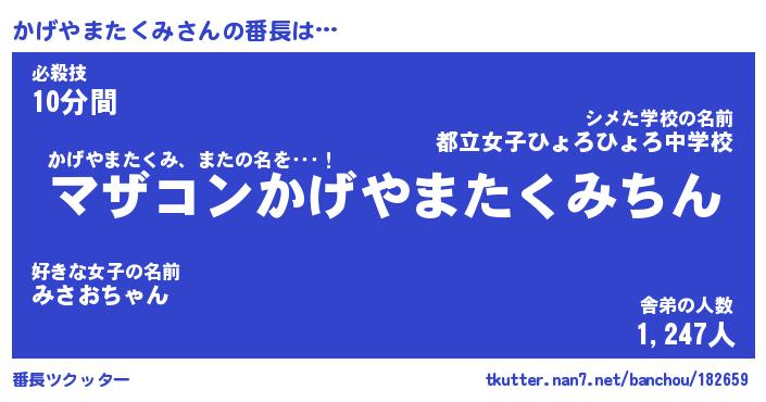 | ヘコむあだ名 | 『かげにゅー』『豆乳』『かげを』 |
