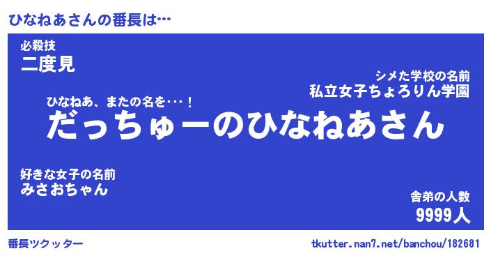| 2回繰り返すあだ名 | 『ひなひな』『ひひなな』『ねちねち』 |