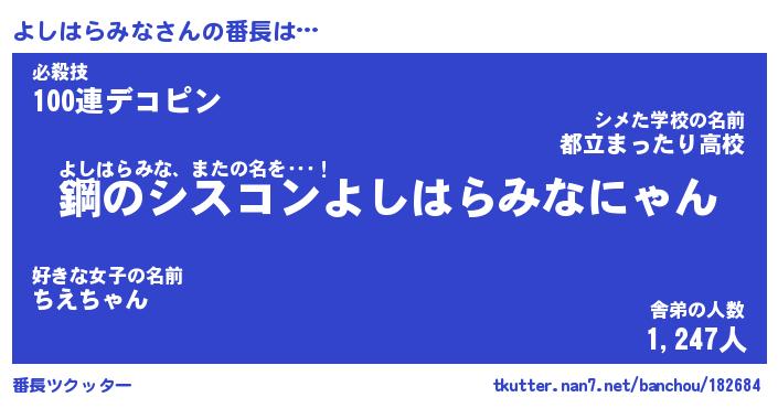 | 恥ずかしいあだ名 | 『プリティーよしはらみな』『よしっちょ』 |