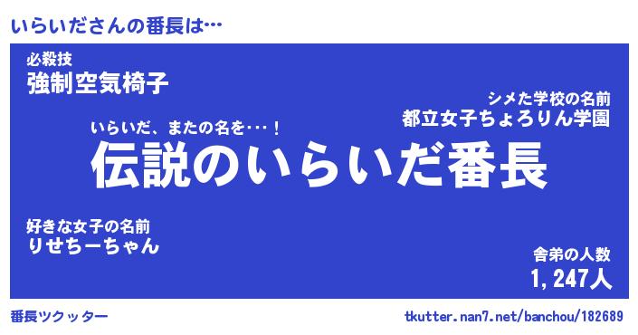 | 肩書あだ名 | 『いらいだCEO』『いらいだ総理大臣』 |