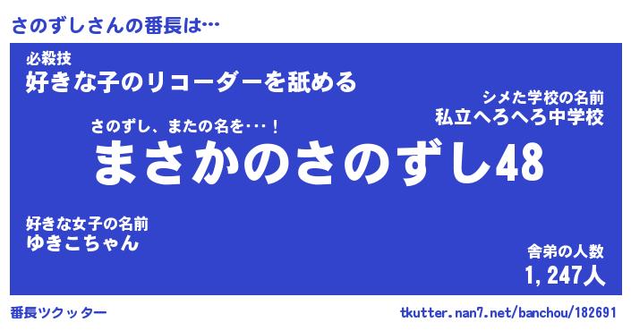 | 伝説のあだ名 | 『伝説のスナイパーさのずし』 |