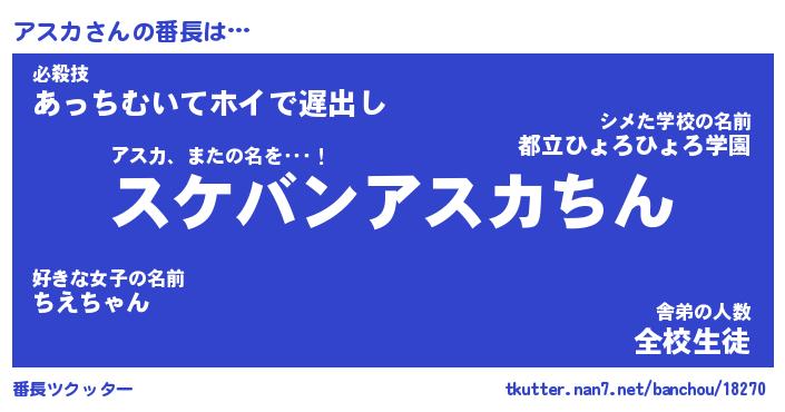 | ヒーロー風カッコイイあだ名 | 『スーパーアスカ』『ウルトラアスカマン』 |