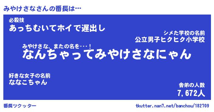 | ピコ太郎風あだ名 | 『ミコ四郎』『ピミ次郎』『ミヤ六郎』 |