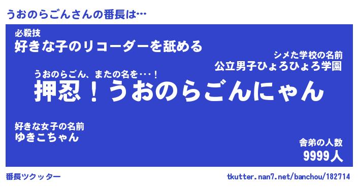 | 伝説のあだ名 | 『封印されしスナイパーうおのらごん』 |
