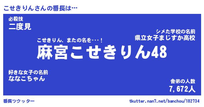 | ヘコむあだ名 | 『こせにゅー』『つくし』『こせっ子』 |