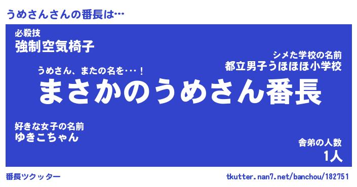 | 意味不明あだ名 | 『ペロリンうめさん』『永久保存うめさん』 |