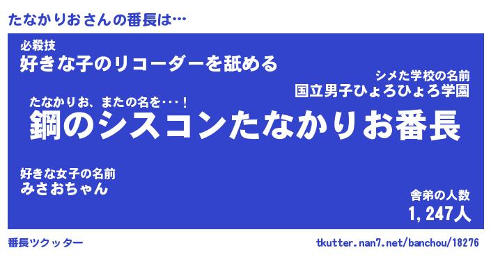 | 伝説のあだ名 | 『封印されしスナイパーたなかりお』 |