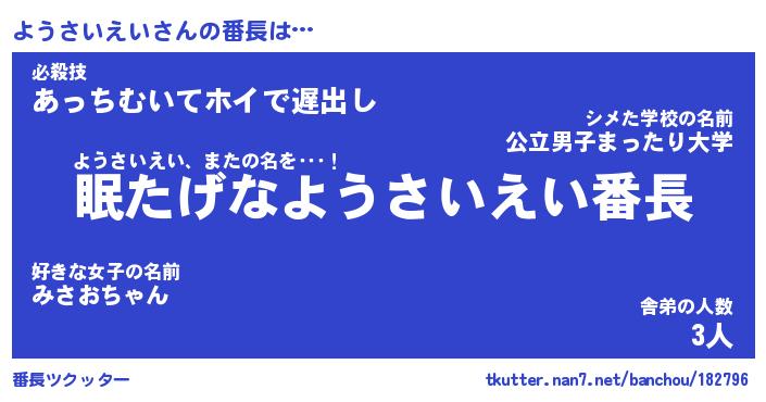 | 欧米人風あだ名 | 『マイケルようさいえい』 |