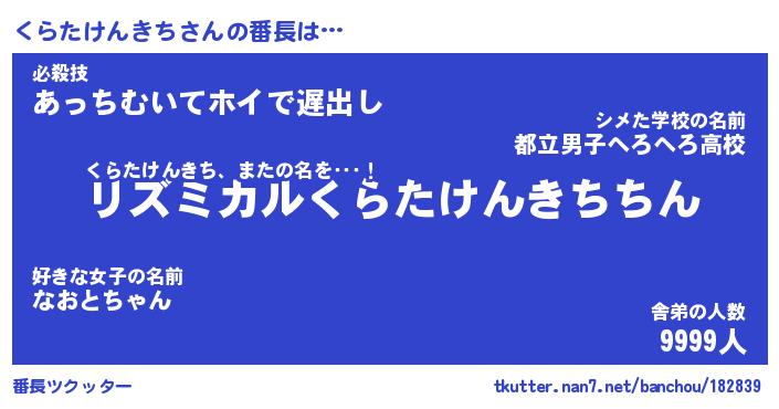 | ヒーロー風カッコイイあだ名 | 『スーパークラタケンキチ』 |