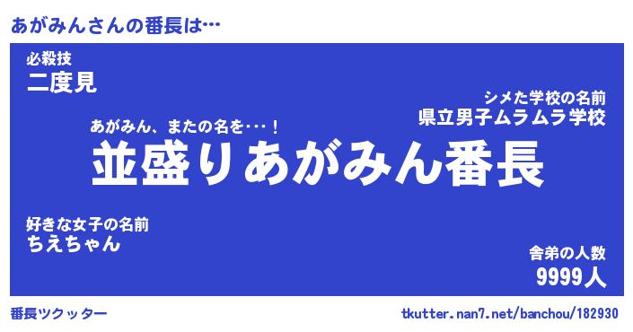 | 肩書あだ名 | 『あがみん御曹司』『あがみん国家主席』 |