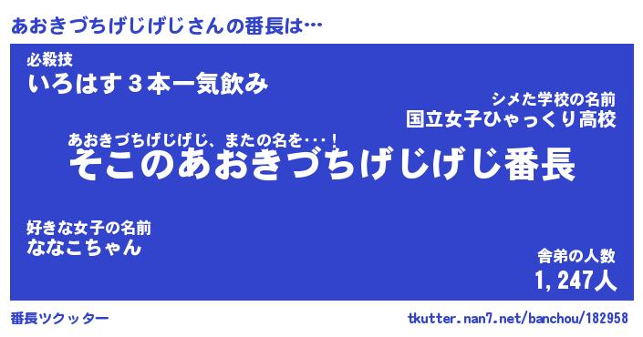 | 伝説のあだ名 | 『不死鳥のスナイパーあおきづちげじげじ』 |