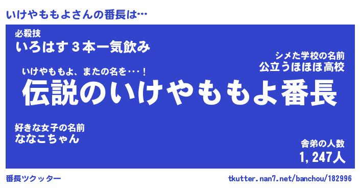 | ヘコむあだ名 | 『いけもー』『なまこ酢』 |