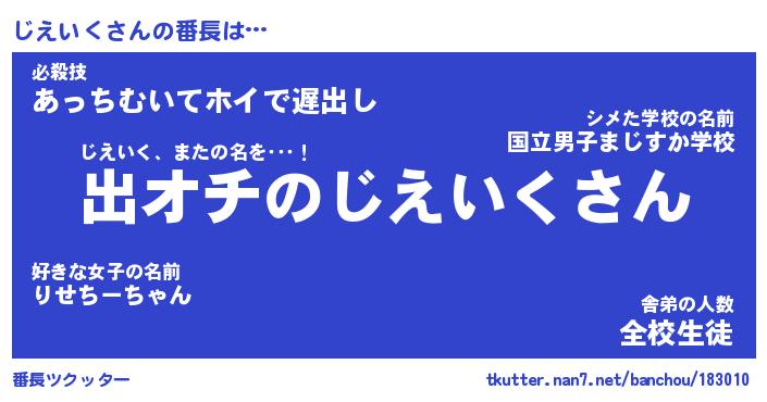 | 意味不明あだ名 | 『ペロリンじえいく』『永久保存じえいく』 |