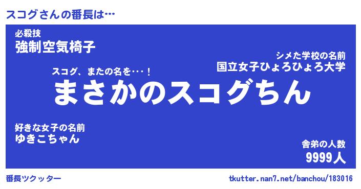 | ヒーロー風カッコイイあだ名 | 『スーパースコグ』『ウルトラスコグマン』 |