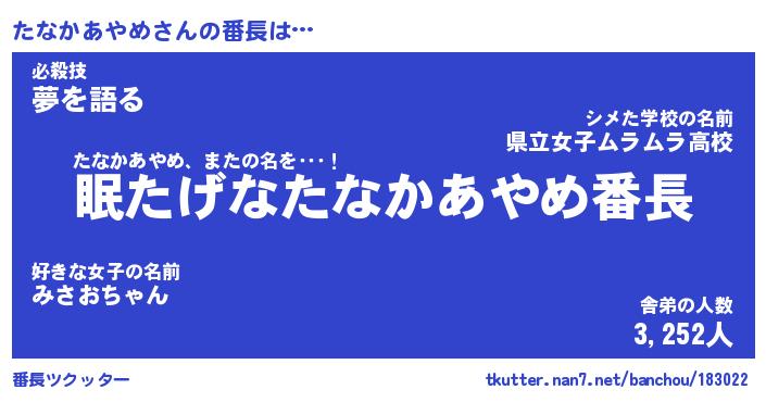 | 伝説のあだ名 | 『封印されしスナイパーたなかあやめ』 |