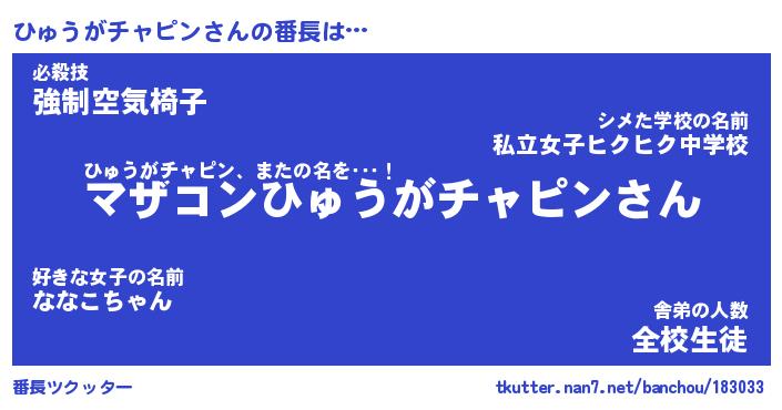 | 伝説のあだ名 | 『封印されしスナイパーひゅうがチャピン』 |
