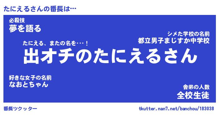 | 意味不明あだ名 | 『ペロリンたにえる』『永久保存たにえる』 |