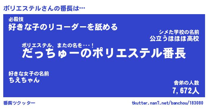 | 伝説のあだ名 | 『伝説のスナイパーポリエステル』 |