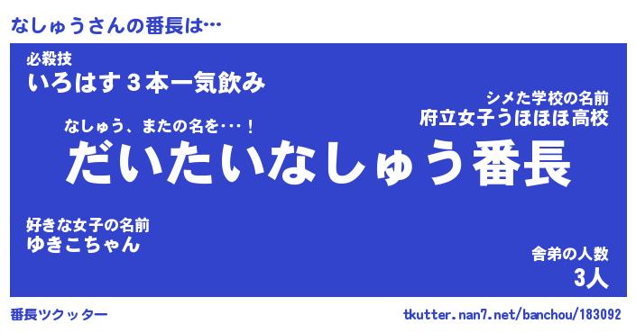 | ヒーロー風カッコイイあだ名 | 『スーパーナシュウ』『炎刃騎士ナシ』 |