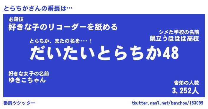 | ピコ太郎風あだ名 | 『トコ三郎』『ピト三郎』『トラ史郎』 |