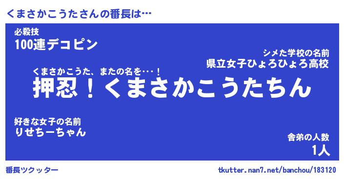 | 伝説のあだ名 | 『封印されしスナイパーくまさかこうた』 |